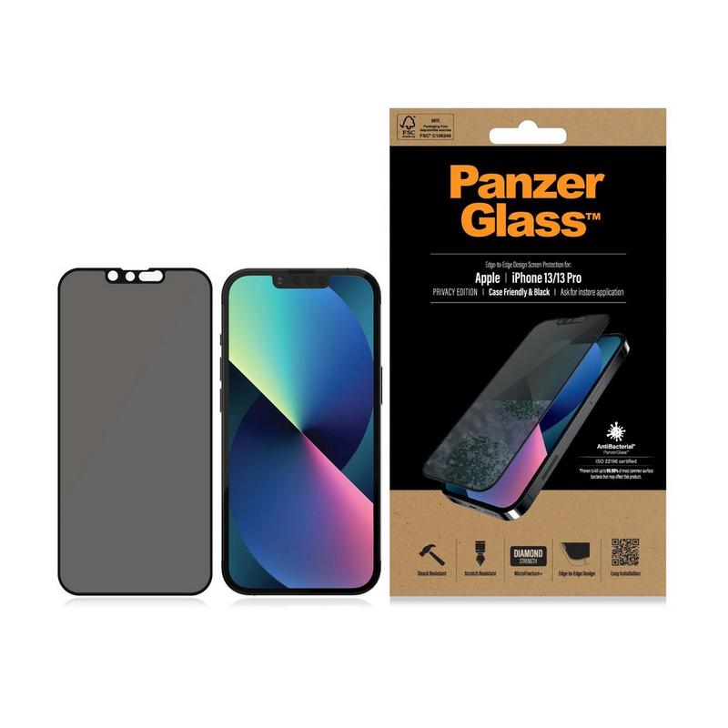 بانزرجلاس واقي شاشة آيفون 13 / 13 برو، تدعم الخصوصية ، أسود